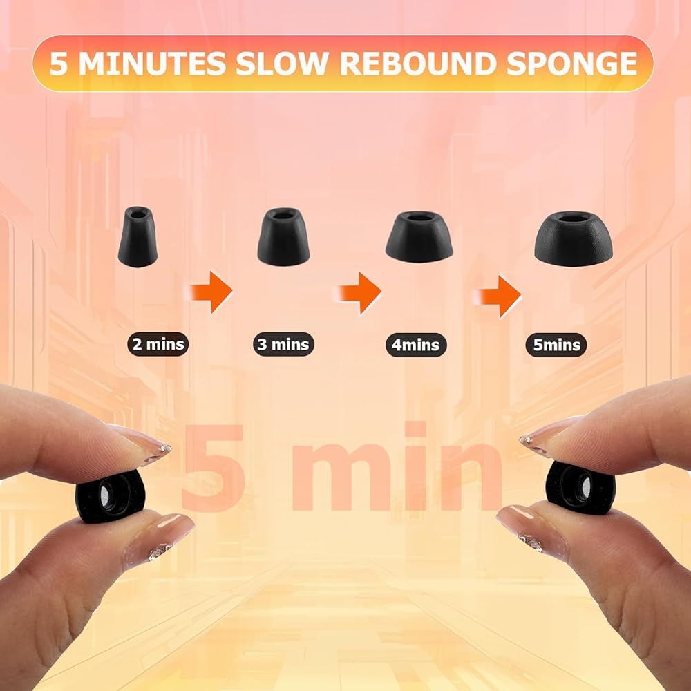 Comfortable Memory Foam Fit – Made from premium slow-rebound memory foam that adapts to your ear shape, providing a soft, pressure-free seal and eliminating the discomfort often caused by silicone ear tips.