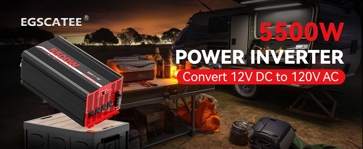 【محول طاقة 5500 واط / طاقة ذروة 11000 واط 】 - يوفر غطاء سبائك الألومنيوم القوي والمتين حماية متقدمة من السقوط والصدمات. تساعد مروحة التبريد الذكية على تقليل الحرارة وتمنع النقص. قم بتوصيل العاكس بمجموعة بطاريات 500 أمبير أو أعلى 12 فولت لتشغيل الحمل الكبير للتأكد من أنه يمكنه العمل لفترة أطول.