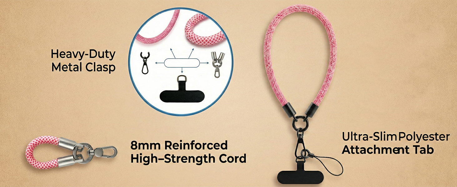 Comfort-Grip & Skin-Friendly: Soft-touch braided rope feels smooth against skin without chafing; ergonomic wristlet design keeps your phone handy while freeing your hands for shopping, travel, or photography