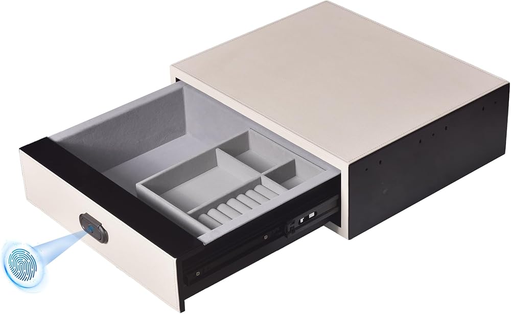 Intelligent Quick-Access Home Safe Box:Experience lightning-fast entry with our advanced fingerprint recognition system that automatically pops open the drawer upon verification. The perfectly sized 18.89"×5.98"×15.82" house safe includes removable dividers, allowing seamless conversion from jewelry safes for home to secure gun safe for pistols storage. Hidden backup key access is discreetly located behind the lock mechanism