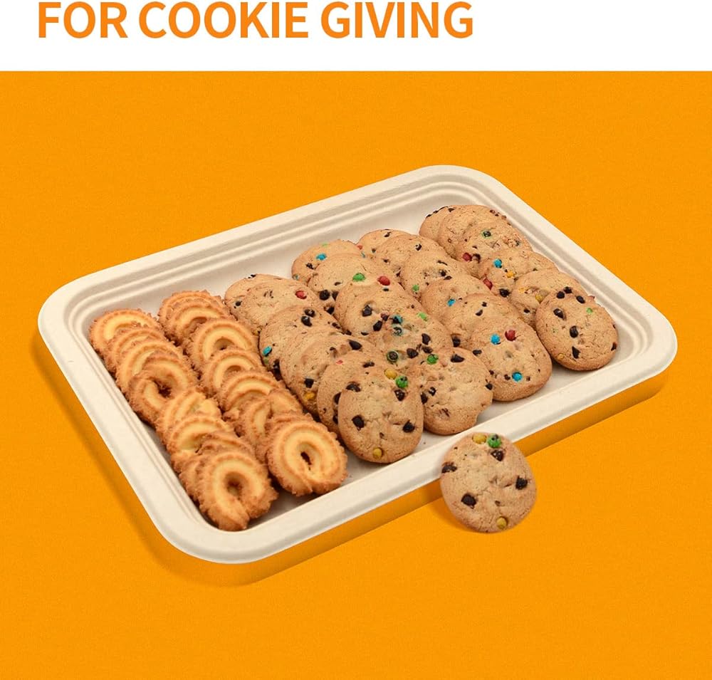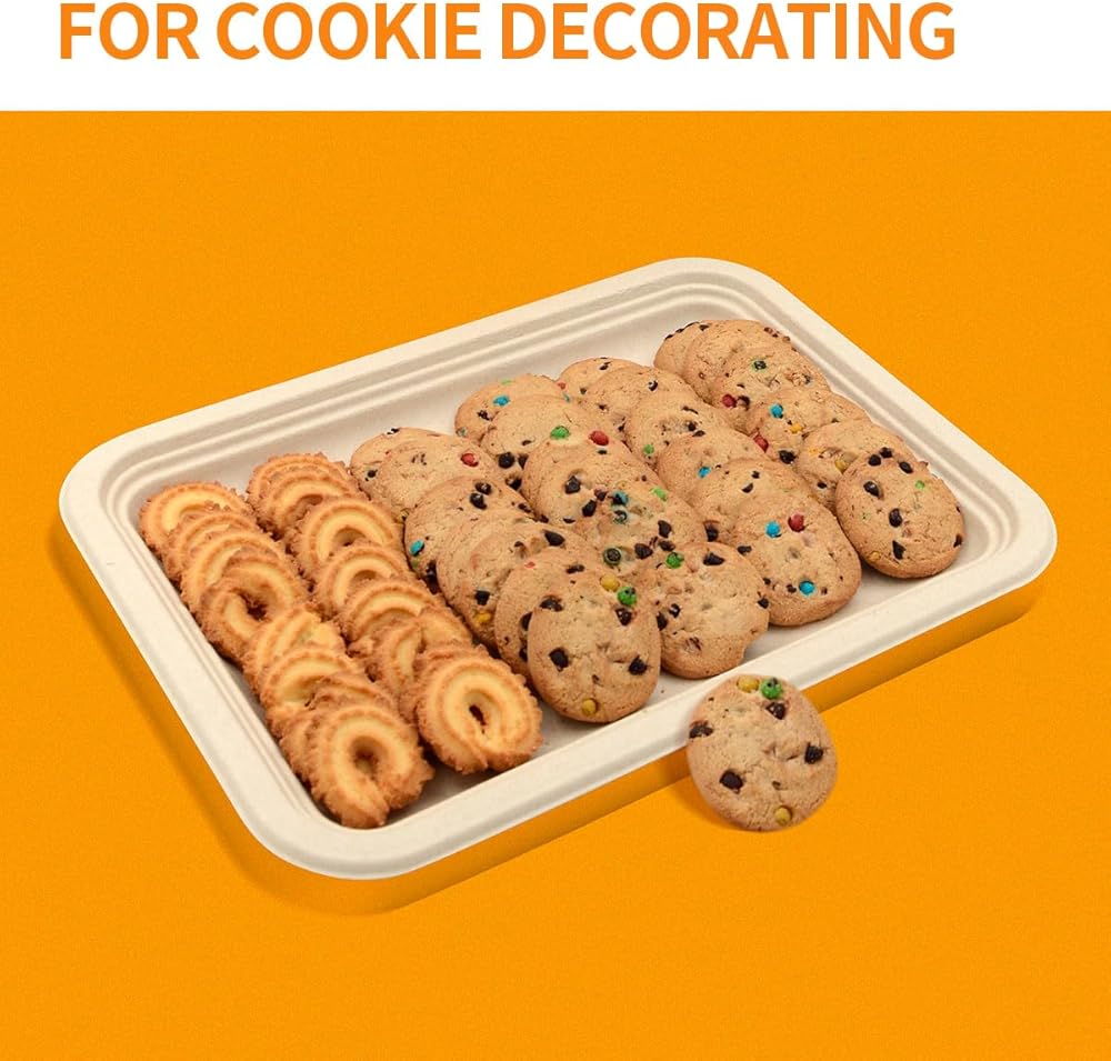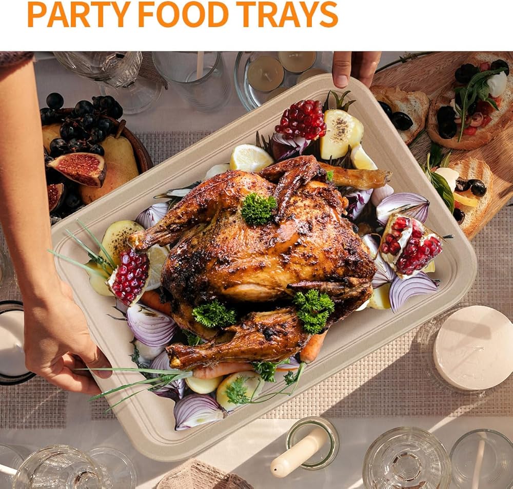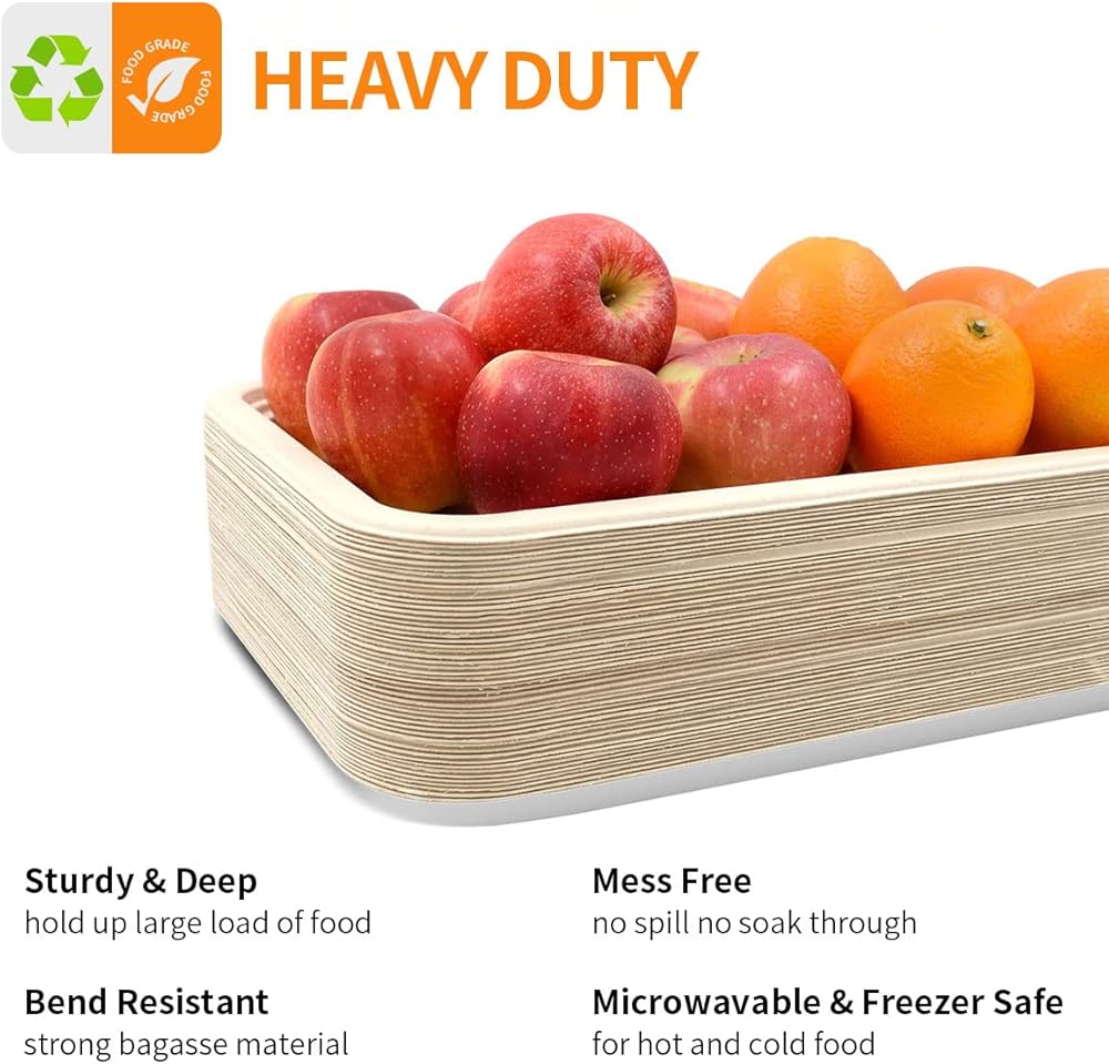 【Ultra Sturdiness】High pressed bagasse product has extra sturdiness comparing to the paper products, prevents the tray from bending or flopping when serving food.