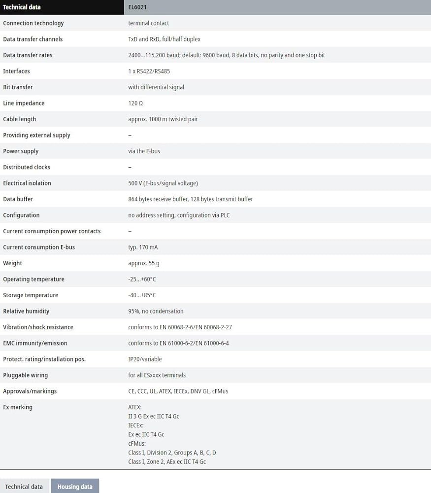 The EL6021 serial interface enables the connection of devices with RS422 or RS485 interface.