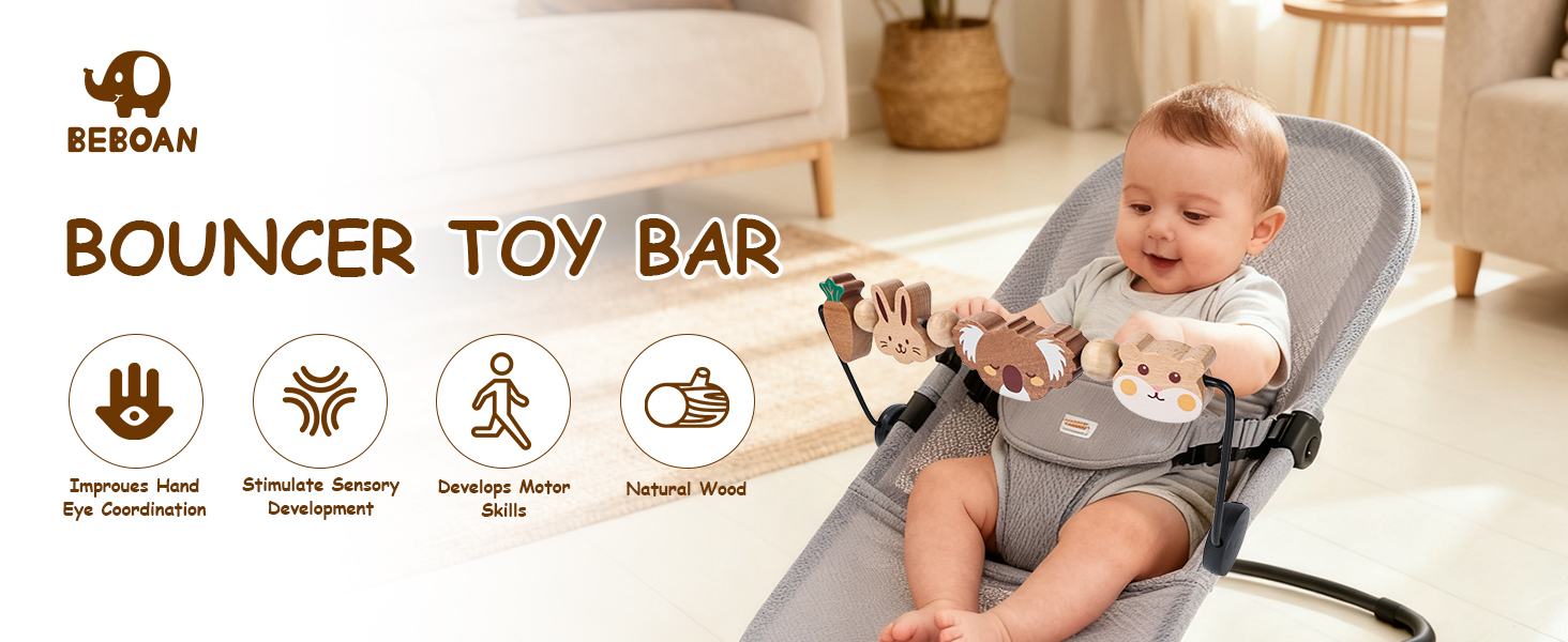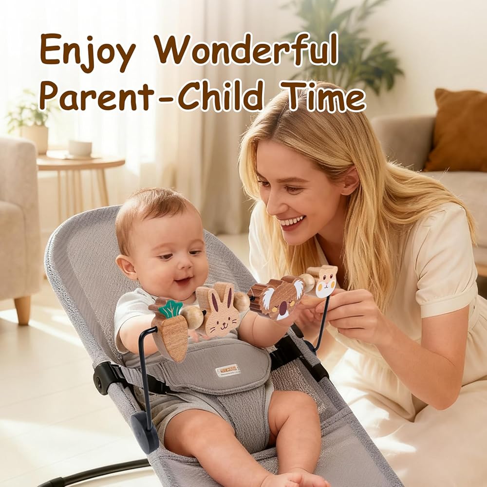 Enjoy Parent-Child Time : BEBOAN bouncer toy bar attracts baby's attention and improves perception. Whether you're busy with housework/work/relaxing, the different natural wood colors effectively attract baby, and the easy-to-rotate pattern adds endless fun