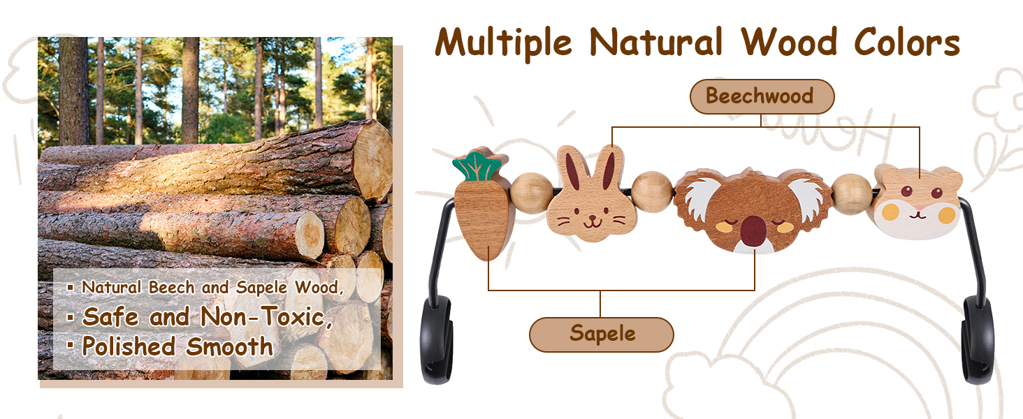 Natural Wood Animal Shape : BEBOAN baby bjorn baby rocker toy bar is designed for babies, with natural wood color, smooth edges and 360° flip design. The cute animal shape can be rotated for your baby to watch, touch and rotate