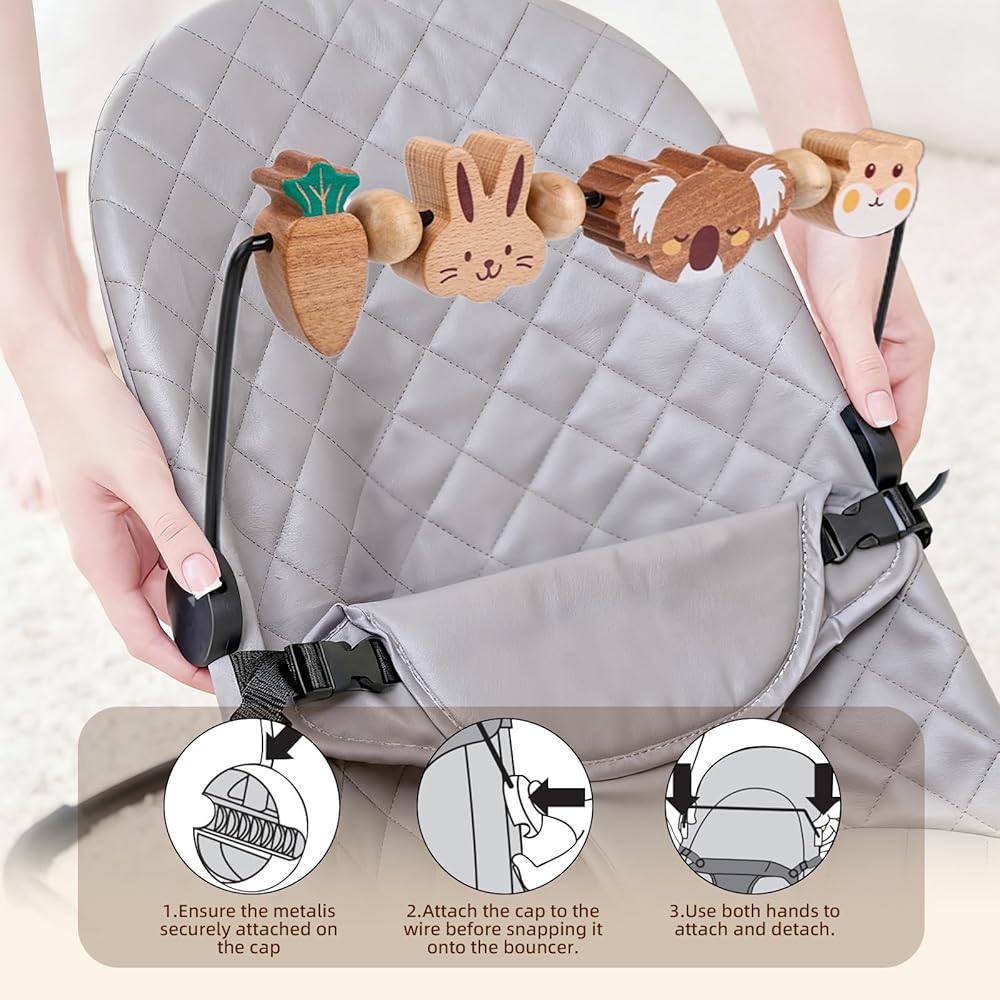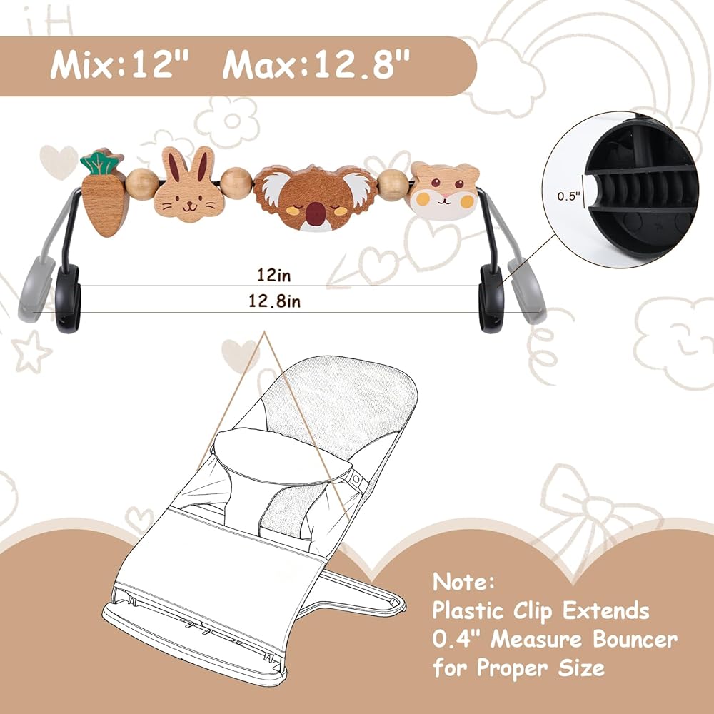BEBOAN Baby Bjorn Bouncer Toy Bar - Toy Bar for Soft & Bliss Baby Bouncer, 360°Rotating Natural Wooden Toys, Easy to Attach/Remove Exciting Design for Curious Babies(Cute Animals)