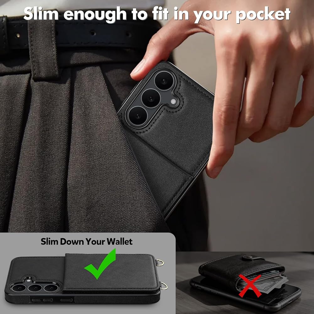 Adjustable & Detachable Lanyard: The wallet phone case for samsung s25 fe comes with adjustable and detachable straps, allowing you to choose a crossbody bag or wristlet bag. The two wearing ways are suitable for shopping, travel, or daily use