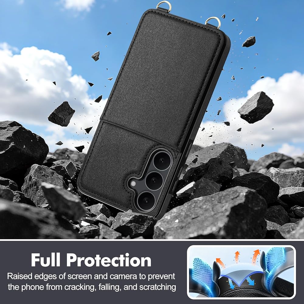Vofolen for Samsung Galaxy S25 FE Case with Card Holder Crossbody Lanyard Strap Leather Wallet Case with Magnetic Clasp Kickstand Heavy Duty Protective Flip Cover for Galaxy S25FE for Women Black