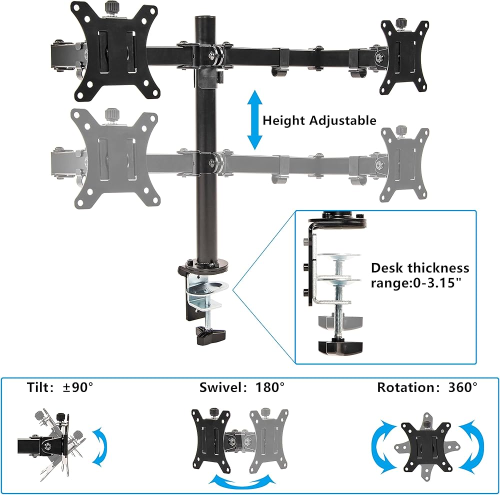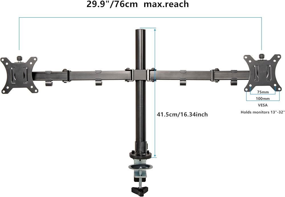 Wide Monitor Compatibility: Supports dual monitors 13–22 inches, with VESA 75x75mm or 100x100mm mounting holes. Perfect for most office and gaming monitors