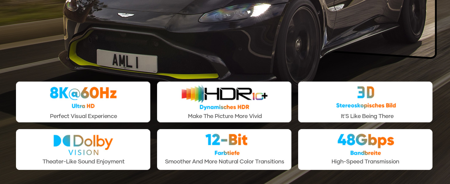 Plug and play: The HDMI extension cable is plug and play. The HDMI extension cable supports all HDMI 2.1 features,including high-speed eARC (32 audio channels) and True Dolby 7 for beautiful surround sound,and offers HDR 10+,VRR,QFT,ALLM,and QMS for 10K 8K gaming enthusiasts. Note: To ensure image quality of 10K 8K@60HZ or 4K@144HZ,you must ensure that the connected HDMI cable also supports HDMI 2.1.