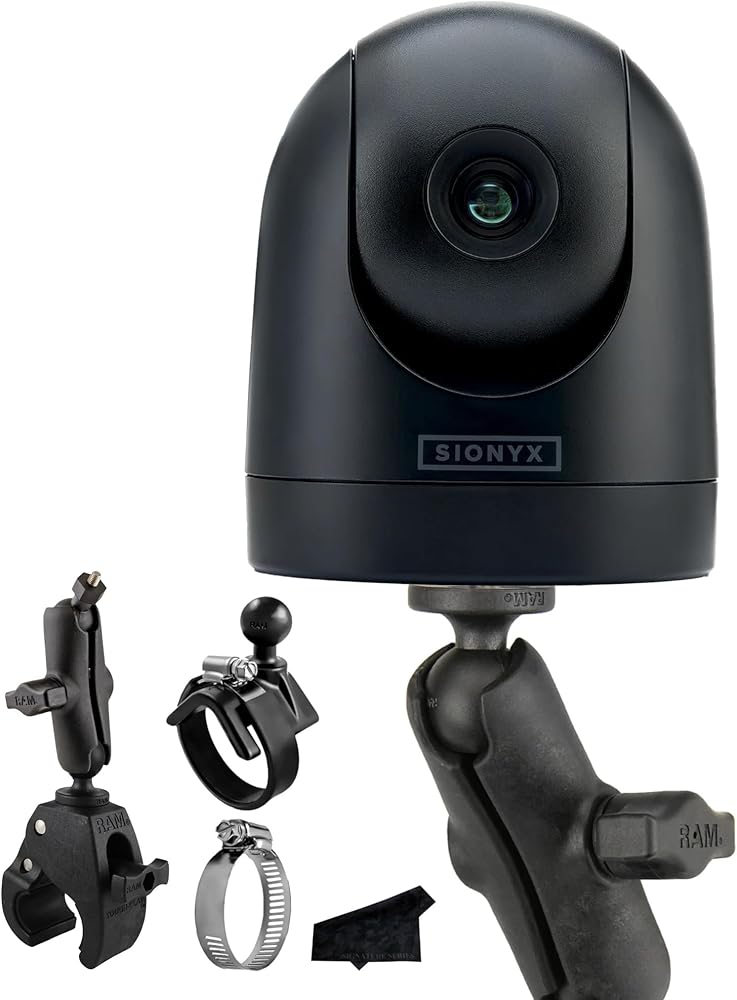 SiOnyx Nightwave Camera, Rugged Ultra-Low Light Color Night Vision Marine Boat Dome Camera | Easy-to-Use App Connectivity with RAM Mounts Camera Mount System and Signature Series Lens Cloth, Black