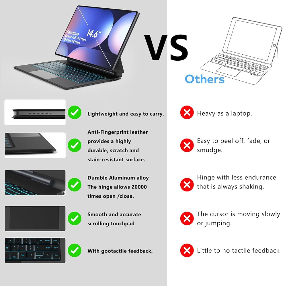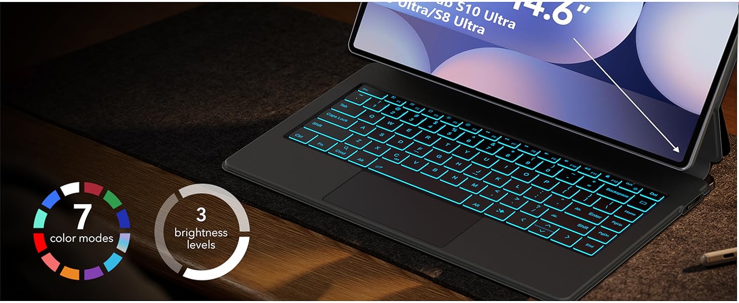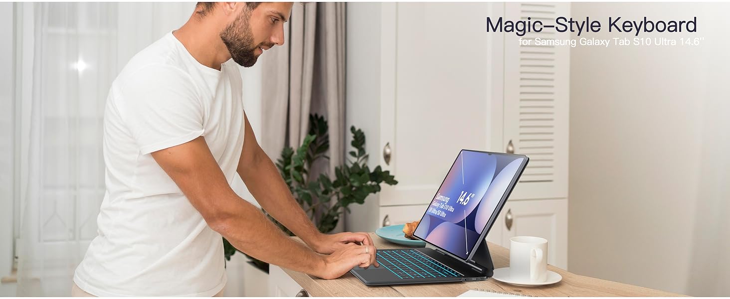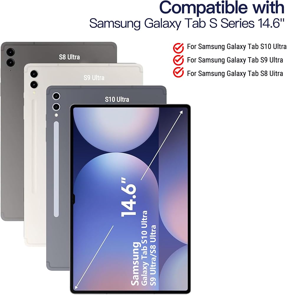 COMPATIBILITY: The keyboard case is specially designed for Samsung Galaxy Tab S10 Ultra 14.6 inch Model 2024 tablet (Wi-Fi SM-X920, 5G SM-X926B), Tab S9 Ultra 14.6 inch 2023 (SM-X910/SM-X916B), providing a perfect fit and full functionality. (Tablet and S Pen not included) Please check your tablet model in "Settings - About Tablet" before purchase