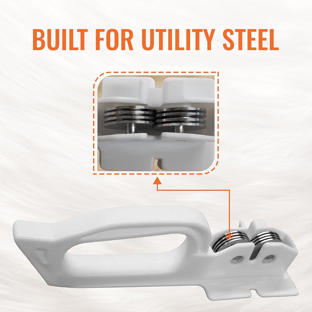 INSTANT EDGE RESTORATION: TUNGSTEN CARBIDE POWER: Quickly restore dull, chipped, and neglected blades in seconds. The single Tungsten Carbide V-slot is engineered to aggressively reprofile the edge fast, setting a strong, usable geometry on hard-working utility knives.