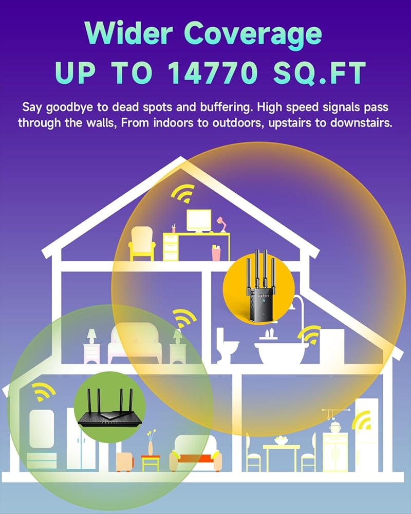 Bank-Level Financial Security: The next-gen 6X faster Wi-Fi repeater and signal booster features a built-in security encryption module for safe browsing.