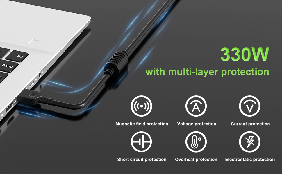 This Laptop charger offers enhanced protection with safeguards against overcharging, overheating, short circuits, overcurrent, and overvoltage.Intelligently distribute Stable and smooth current through durable quality wire, optimize charging efficiency and improve laptop battery performance, providing reliable safety for your devices and peace of mind. ensure you get the best charge.