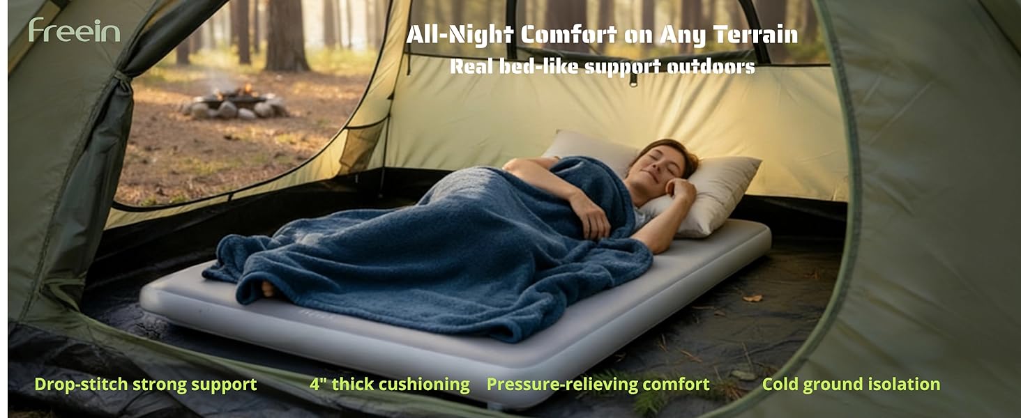 MULTI-SCENARIO VERSATILITY & COMPLETE KIT: A true all-in-one solution for Land and Water adventures. Use it for tent camping, car/SUV/RV sleeping, picnics, or as a floating mat for the pool and beach. It also doubles as a comfortable spare bed for guests at home. The complete set includes the Inflatable Sleeping Pad, Hand Pump, and Carry Bag—no extra purchases necessary.