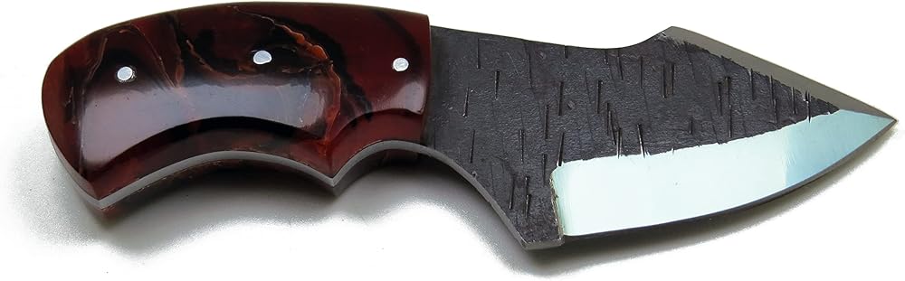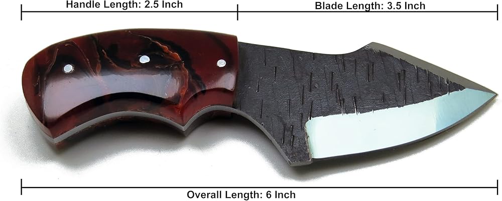 Premium Damascus Knife 6" Blade 3.5" W/Leather Pouch Multi Purpose Instruments Handle (Lava Red)