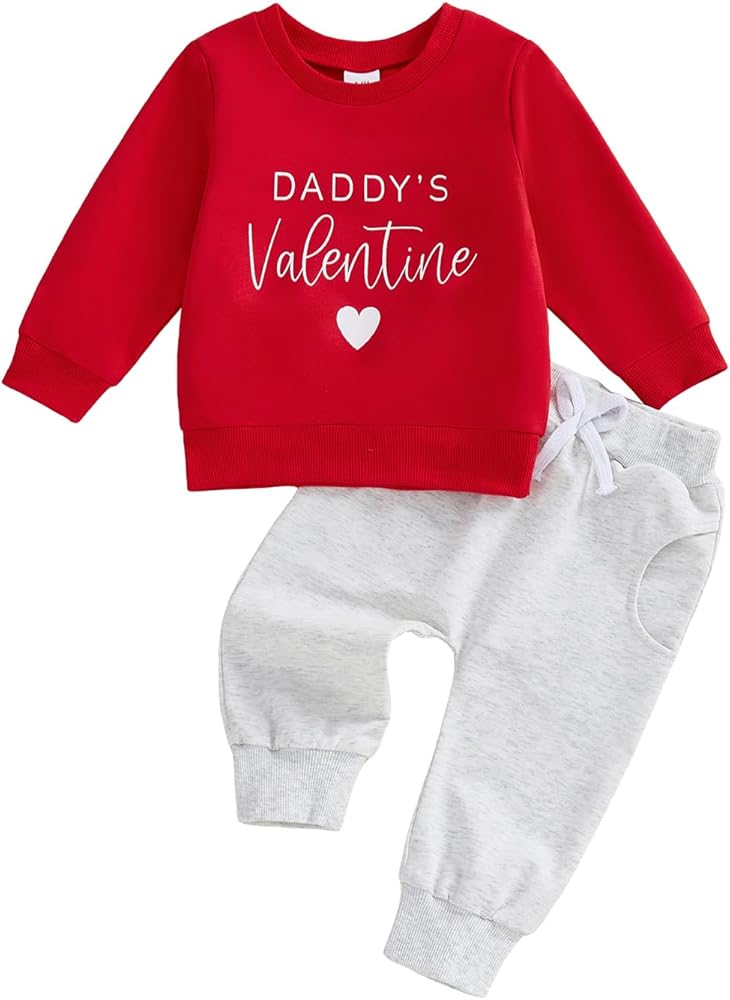 Toddler Baby Valentines Day Outfit Heart Letter Long Sleeve Sweatshirt and Solid Joggers 2 Piece Spring Set