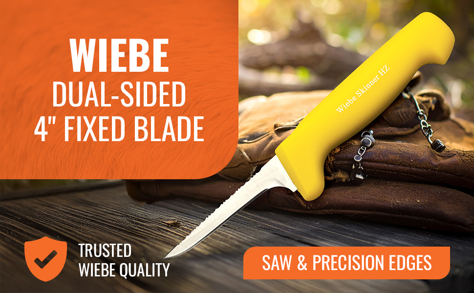 WICKED SHARP" PLAIN EDGE, RUGGED SERRATED POWER: Experience Wiebe's legendary sharpness on the precision plain edge, perfect for preserving hide integrity and clean meat cuts. The robust serrated edge provides aggressive sawing action when you need it most. Both are crafted from quality stainless steel for lasting performance.