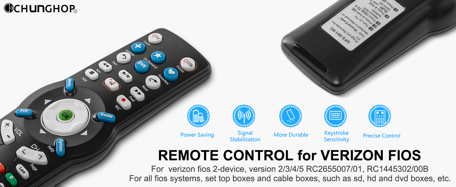 يناسب جهاز التحكم عن بعد هذا معظم صناديق كابلات Verizon وصناديق الاستقبال، مثل صناديق SD وHD وDVR؛ العمل مع Verizon FiOS 2-Device وfios TV STB box. كما أنه يناسب جهاز التحكم عن بعد RC1445302/00B، verizon fios. (إذا كان لديك أي سؤال أثناء الاستخدام، فلا تتردد في الاتصال بنا!)