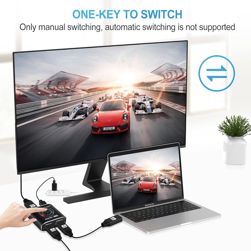 Compact & Travel-Friendly Design: Weighing only 0.1 lb and measuring 2.09×2.05×0.83 in, this switch fits neatly behind devices. Includes power adapter and manual. Switch between devices in under 3 seconds for effortless use.