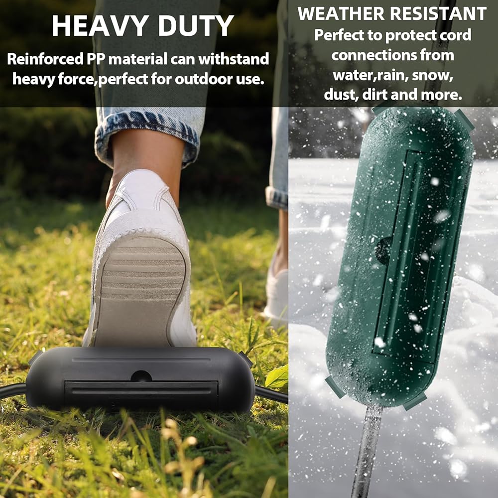 HEAVY-DUTY PLASTIC WITH RUBBER SEALS - Durable and watertight, these connector covers are perfect for home and shop use. The high-quality molded plastic case has rubber seals on all edges with a solid and tight seal on wire entry points. No more water entering into the cord connectors and absolutely no more accidental unplugging!