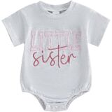 • Design: Baby girl summer romper, baby boy brother romper, baby girl short sleeve romper, baby boy sister romper, baby boy clothes little brother, baby boy clothes little sister, summer newborn girl boy clothes, short sleeve round neck letter embroidery romper; Snap closure at the crotch