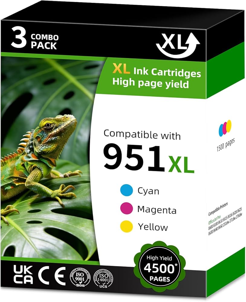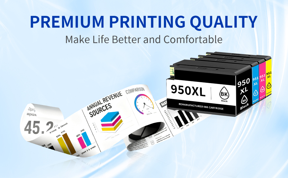 Premium Print Performance: Our Repeka 951XL Ink Cartridge Replacement is meticulously produced following strict ISO 9001 and ISO 14001 STMC standards, they ensure sharp text, vivid images, and consistent quality page after page
