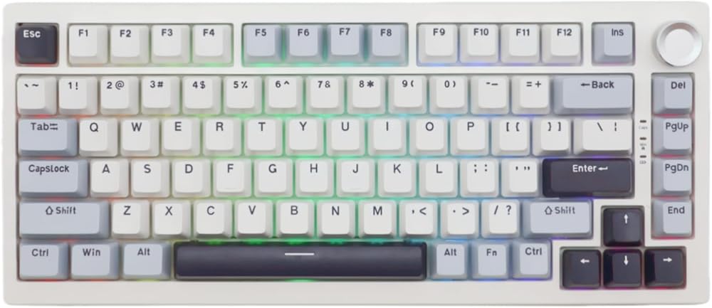 COMPACT 75% LAYOUT KEYBOARD: This gaming keyboard supports Win&MAC&Android system and improves desktop space utilization, equipped with the necessary arrow keys and a multi-functional rotary knob, provides more space for mouse movement, and is more suitable for gaming and productivity.