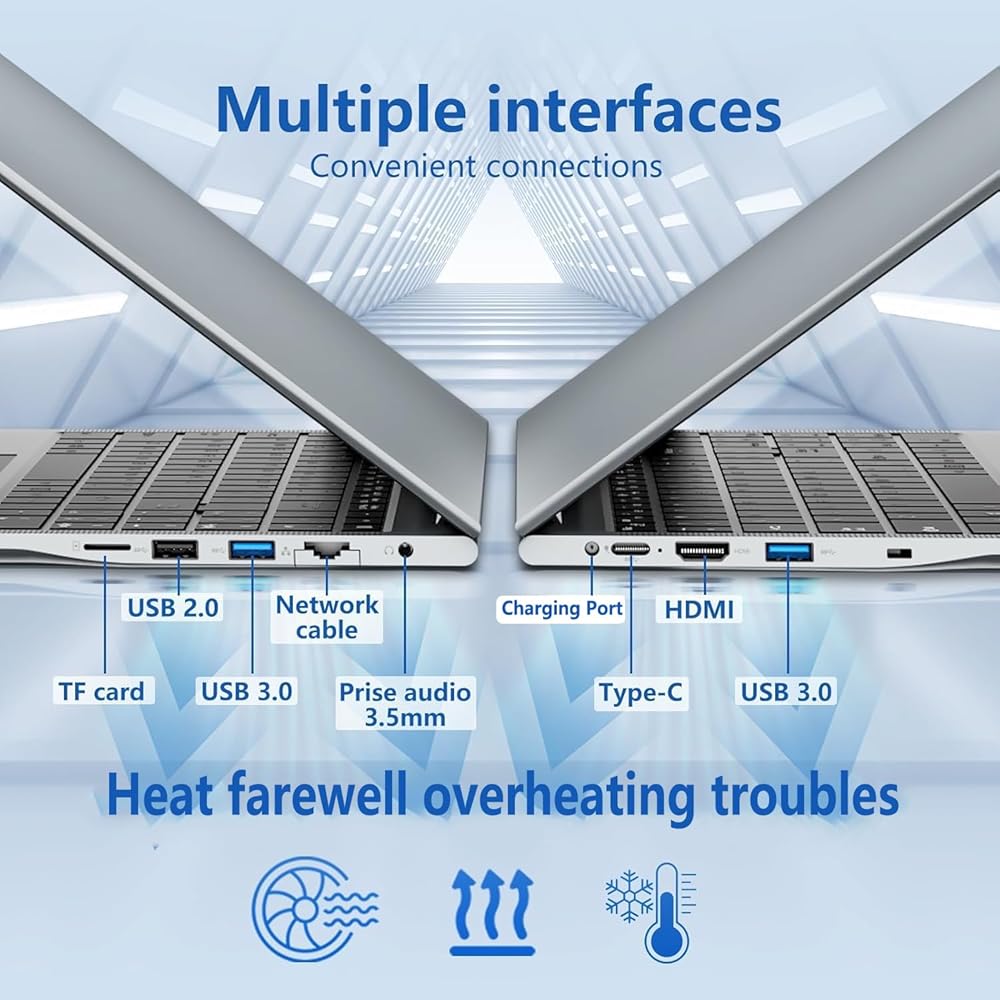Operating System:This Laptop Computer also comes with dual-band WiFi5 for fine-speed transfers and downloads. Bluetooth 5.0 allows easy and secure connection to other devices within range. Equipped with a 5800 mAh 7.6 V lithium polymer battery for reliable and long-lasting performance. Whether you're working, studying, or having fun, this laptop has you covered.
