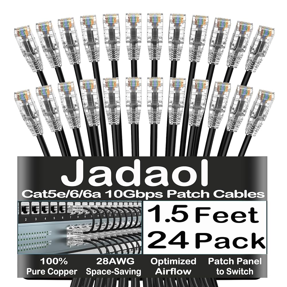 Jadaol Cat6A Patch Cables are designed specifically for short-distance patch connections inside network racks and cabinets. This Ethernet Patch Cable is ideal for connecting patch panels, switches, and servers where precise cable length, flexibility, and clean routing are required.