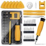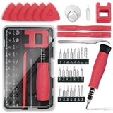 This precision screwdriver set is designed for electronics repair, featuring 40 high-quality CR-V steel magnetic bits (heat-treated to 60HRC for exceptional durability, wear resistance, and deformation/breakage resistance) that cover nut sockets, tamper-proof Torx, standard Torx, Gamebit, Tri-wing, and other specifications. Compatible with computers, laptops, smartphones, game consoles, and more, it effortlessly handles assembly, part replacement, hardware upgrades, and common issues like power abnormalities, motherboard failures, poor heat dissipation, hard drive expansion, insufficient memory, and fan noise. Boasting an ergonomic pen-shaped design for 360° one-handed operation in tight spaces, it has a built-in magnetic switch to adjust magnetism (preventing screws from falling or protecting sensitive components) and comes with practical accessories including a magnetic mat, extension rod, flexible shaft, pry bars, tweezers, and a suction cup. Packaged in a high-quality PU canvas portable case with a nylon shoulder strap, it's organized, compact, and ideal for home or on-the-go use—perfect for gamers, DIY enthusiasts, technicians, and makes a thoughtful gift.