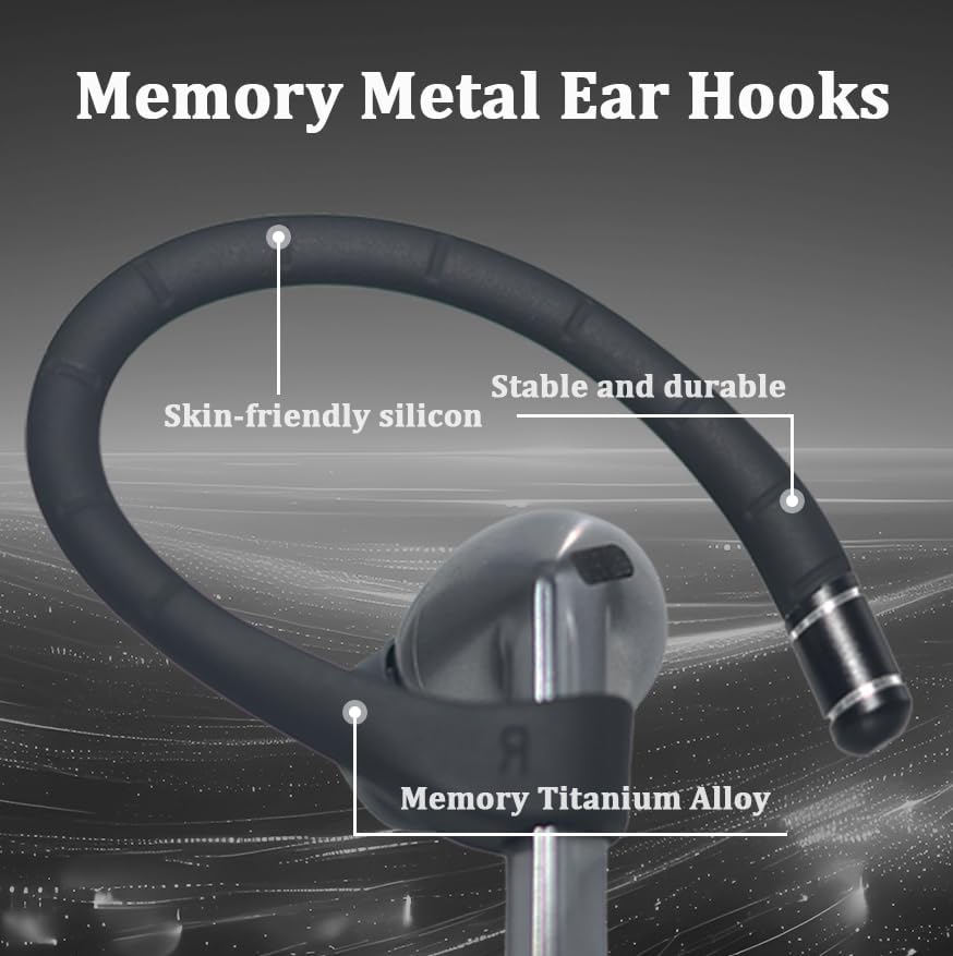 Built-in memory wire: Super strong grip, it can fit your ears safely and securely even under outdoor running or high-strength work. Don't worry about falling headphones