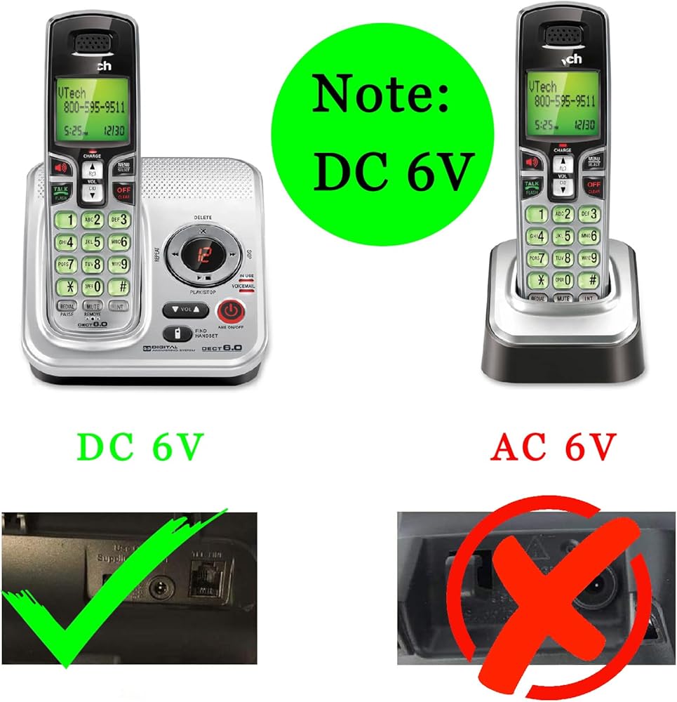 DC 6V Power Adapter Charger for AT&T Vtech S0051V0600040 SIL LS6115 CL80101 S005IU0600060Cordless Phone Base Units, 5FT Cable (Not AC6V)