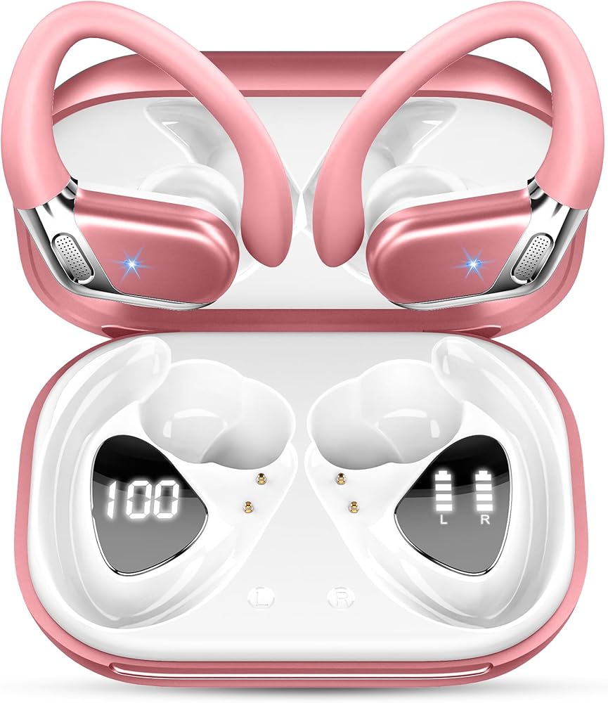 Wireless Earbuds, 2026 Bluetooth 5.4 Headphones Sport, Bluetooth Earbuds with ENC Noise Canceling Mic, 65H Stereo Wireless Headphones IP7 Waterproof with Earhooks, Dual LED Display for Workout/Running