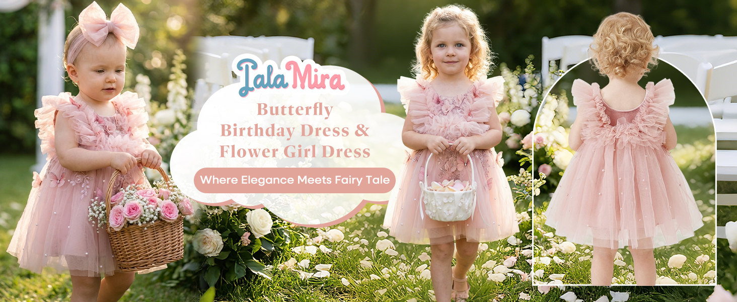 【Fabric】Crafted from soft, lightweight tutu tulle for the main body and smooth velvet for the back lining, this dress is breathable, not stuffy for long-time wear and friendly to babies' sensitive skin. The 3D butterfly patterns and pearls are securely attached, while the puffy tulle skirt maintains its fluffy shape well for formal or semi-formal events.t