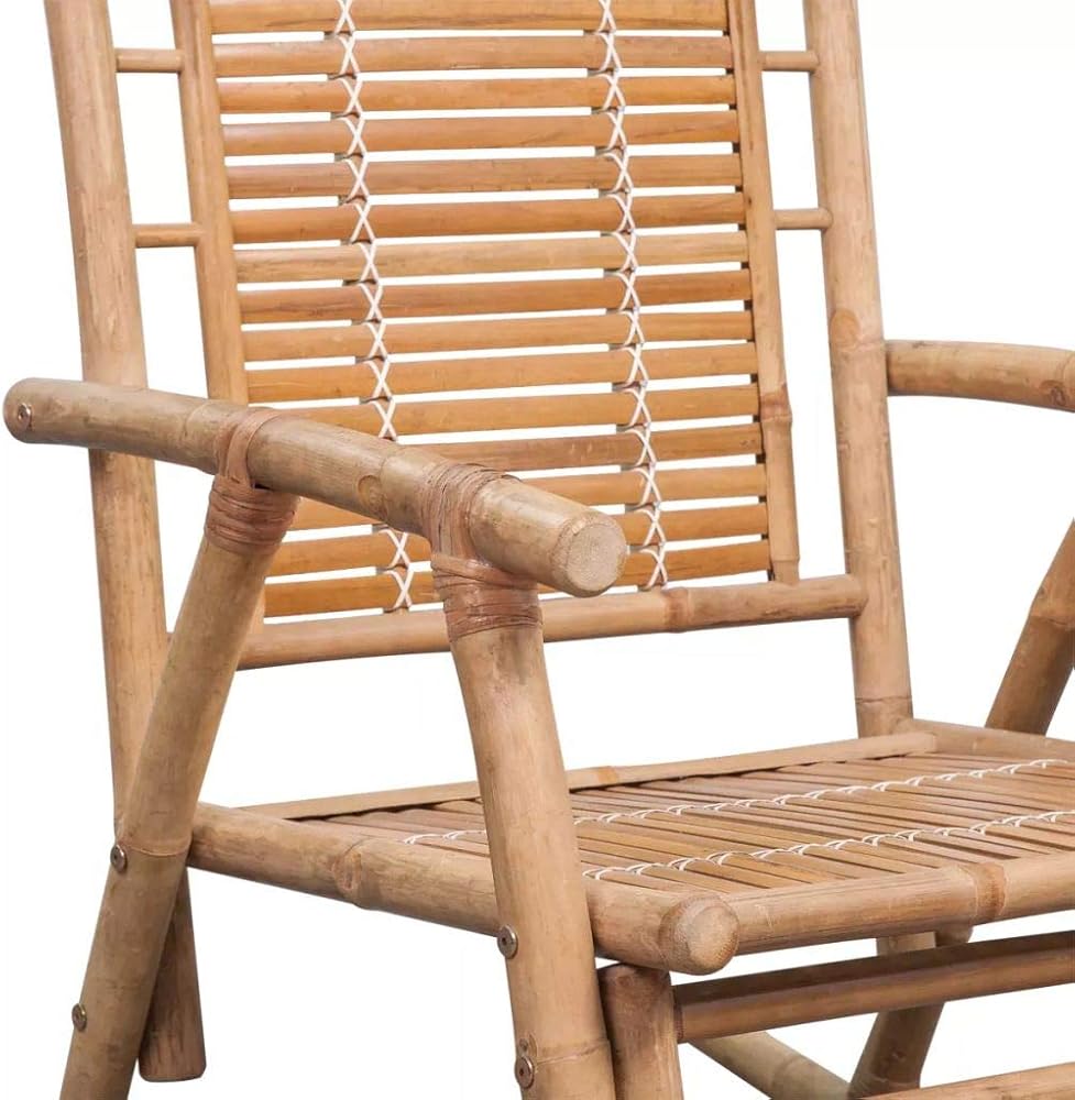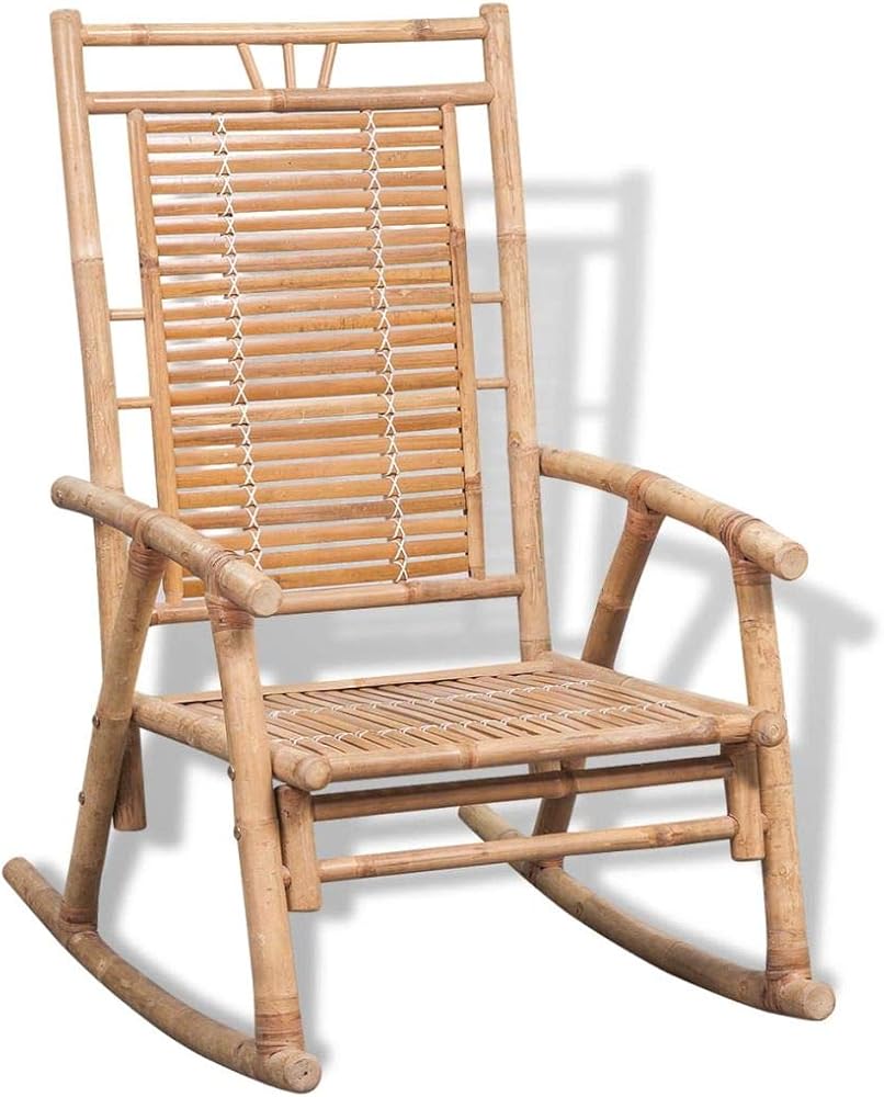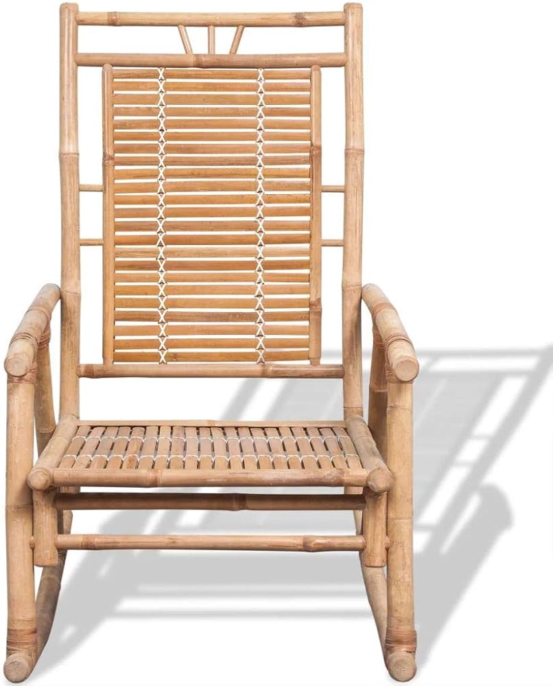This bamboo rocking chair is a great choice for relaxing in your garden or on your patio. Made of solid bamboo, this chair is easy to clean, b and durable. Being UV and weather resistant, the bamboo chair can be used indoors as well as outdoors. The rocking chair will make a fabulous addition to any living space. Storing: If possible, store in a cool, dry place indoors. If the product is stored outdoors, protect it with a waterproof cover. Wipe and dry the excess water or snow from flat surfaces after a rain or snowfall. Allow sufficient air circulation to avoid water-related damage.Material: BambooSize: 26" x 33.9" x 41.3" (W x D x H)Seat width: 21.7"Seat depth: 21.1"Seat height from the ground: 14.6"Armrest height from the ground: 21.7"California Proposition 65