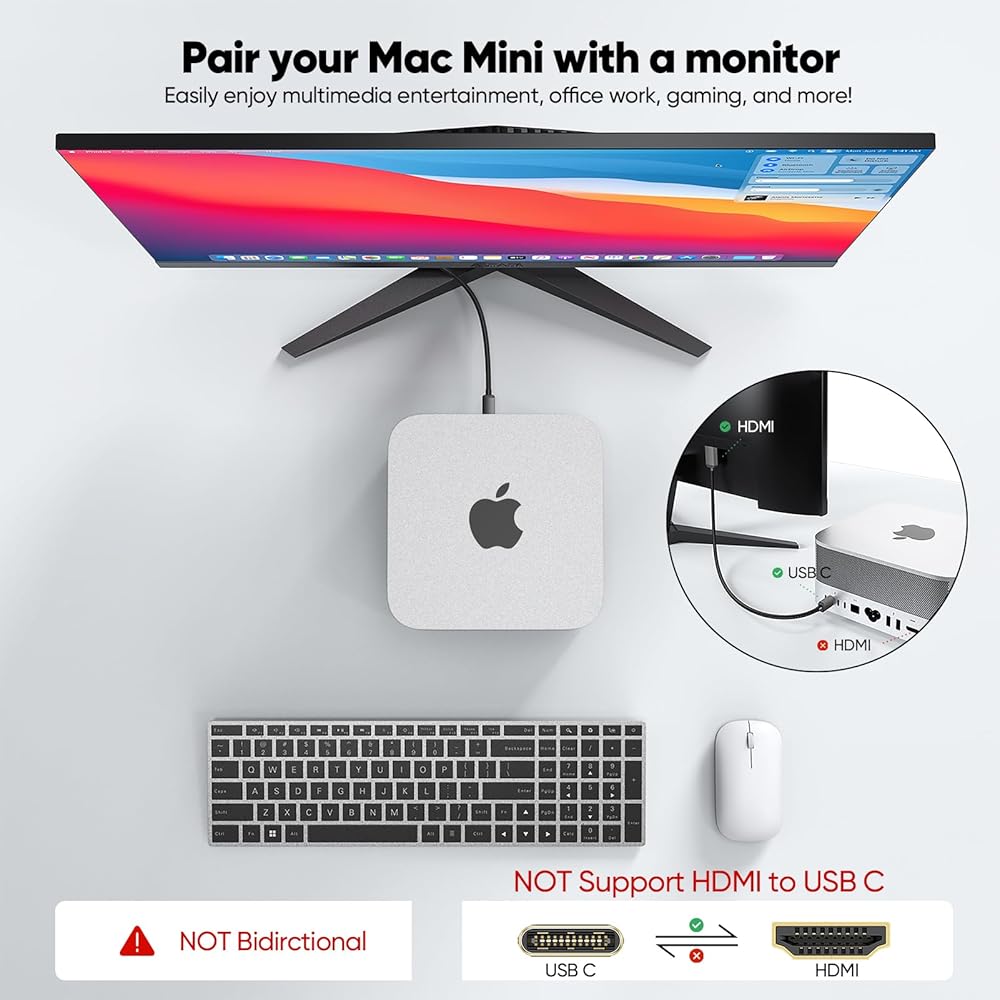 【🌹Perfect 1.5FT Length,Not Bidirectional】Our Short USB C to HDMI Cable 1.5ft (Thunderbolt 3/4/5 compatible) is the perfect choice for short-distance setups where space matters! Such as connecting a laptop to a second portable screen. Whether you're working at your desk, presenting in a meeting, or streaming at home, this compact cable delivers 4K video and audio without the clutter of extra-long cords (🧨Please confirm that your usb c device support video functionality/DP Alt Mode).