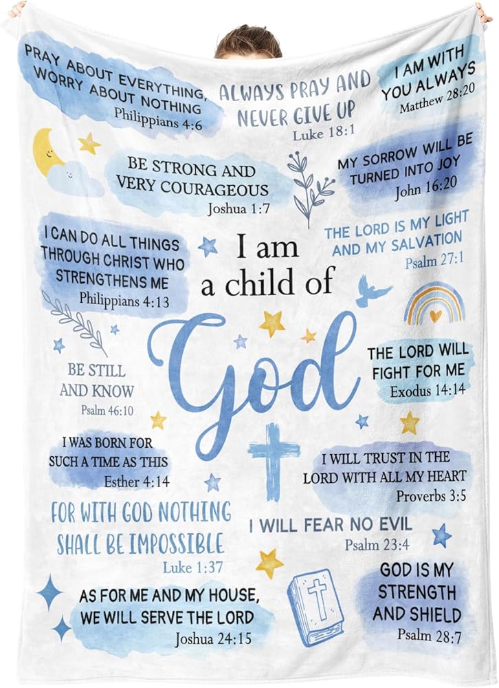 Baptism Gifts for Boys: This Christian blanket is printed with inspiring Bible verses and messages of hope, making it a religious gift filled with love and care. It serves as a constant reminder of God's love and strength, offering spiritual support and encouragement to the recipient