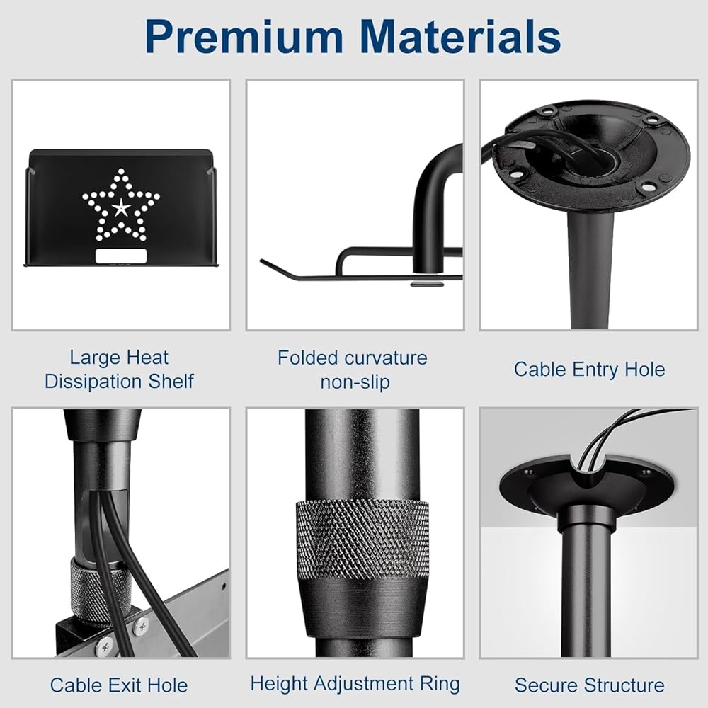 【Height Adjustment】The projector shelf ceilling mount can be mounted on the ceiling. The pole extends 11.6 - 17.3IN / 29.5 - 44CM. Enjoy the best viewing angle and make sure your equipment is safe and protected. This projector ceiling mount with tray is perfect for home theaters, bedroom, classrooms, conference rooms, waiting rooms, fitness centers and more!