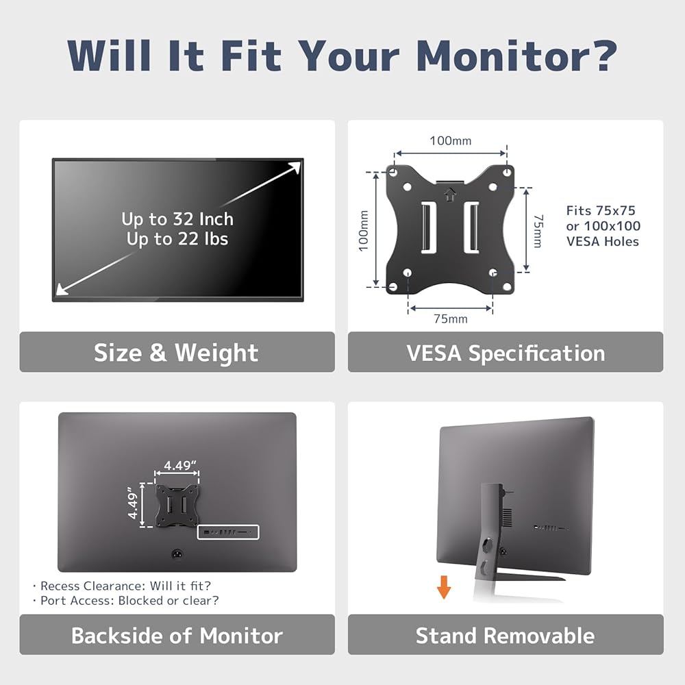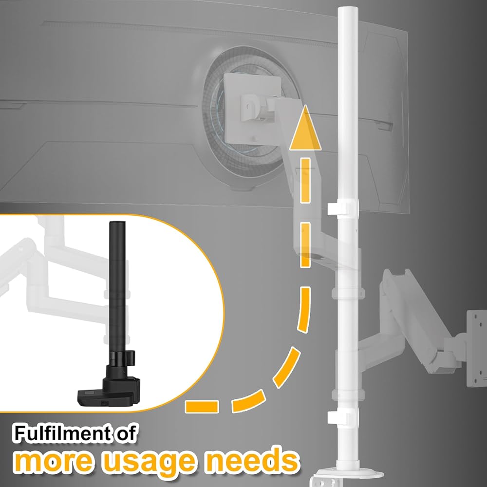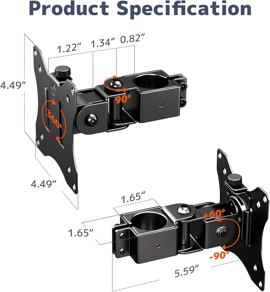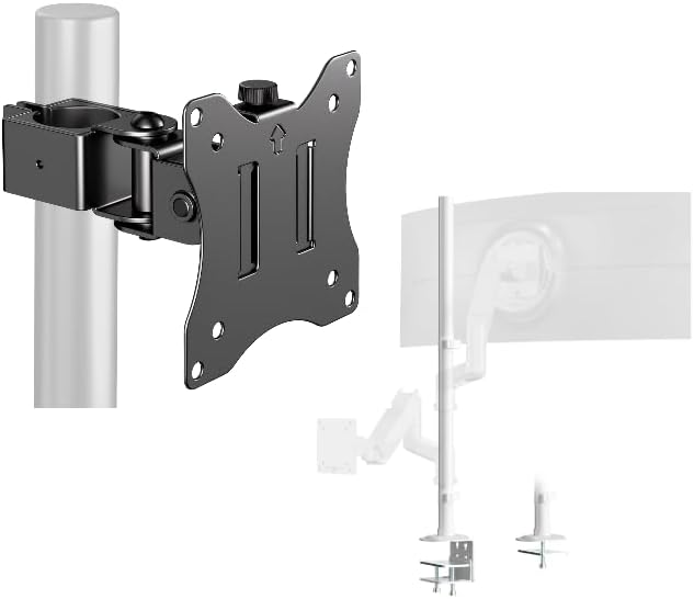 Broad Compatibility & Robust Support for Large Screens:Engineered to securely hold monitors up to 32 inches with a maximum weight capacity of 22 lbs (10 kg) with our heavy-duty pole mount. Engineered for universal compatibility with 75x75mm and 100x100mm VESA patterns, it offers a reliable and sturdy holding solution. This robust design solves the challenge of finding a dependable mount for bigger, heavier displays, giving you peace of mind
