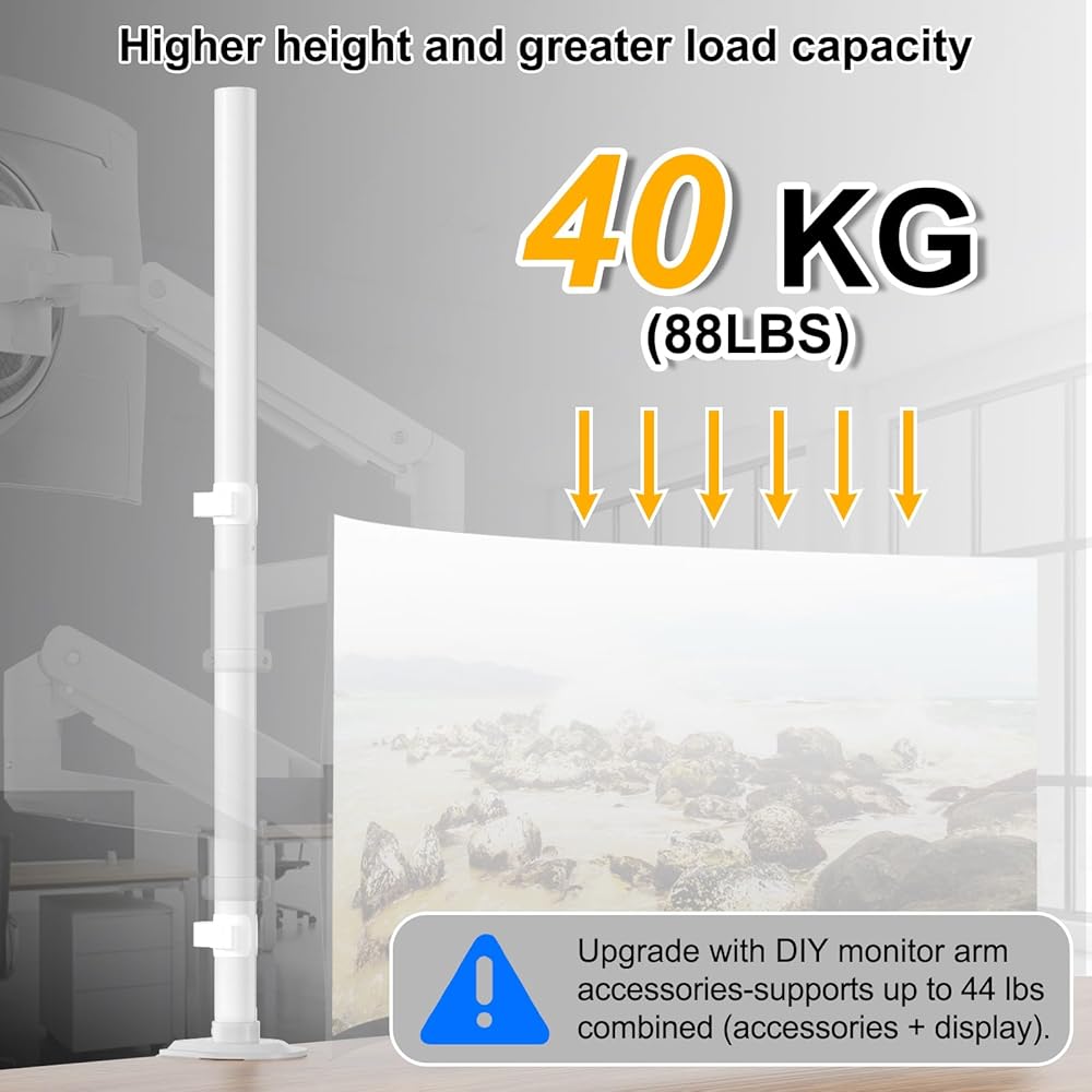 Heavy-Duty Professional Solution: Crafted from high-quality steel tubing (35mm / 1.38 inches diameter) with a powder-coated finish, this stand offers unmatched stability for large gaming monitors (up to 40kg/88lbs) – perfect for ultrawide screens