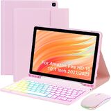 EAMPANG Tablet Case with Keyboard Mouse for Amazon Kindle Fire HD 10&10 Plus 11/13th Gen 10.1 inch,7 Color Rainbow Backlit Detachable Keyboard Magnetic Cover with Pen Slot HD 10 2021&2023 Pink