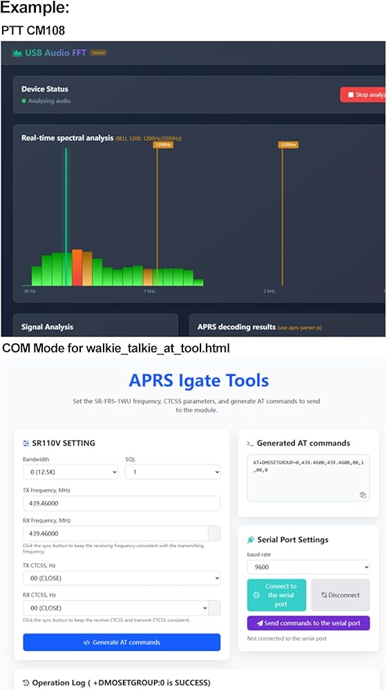 Only Green LED on is COM Mode for walkie_talkie_at_tool.html