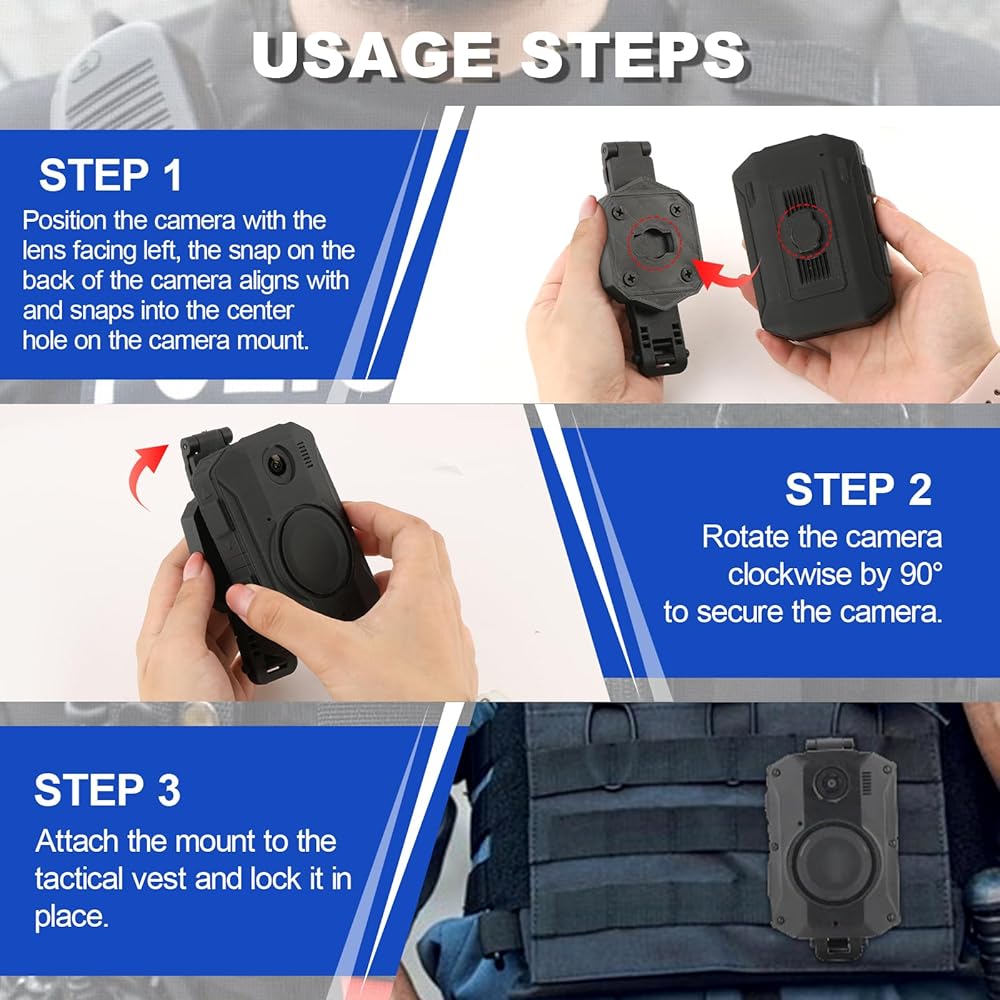 Made from high-quality aluminum alloy, it features a four-point camera mounting plate and a spring clip design. This ensures the for Axon Taser body camera remains steady during filming.