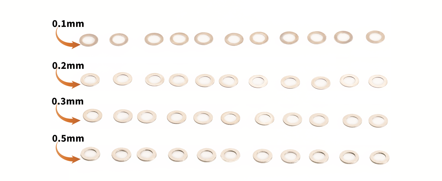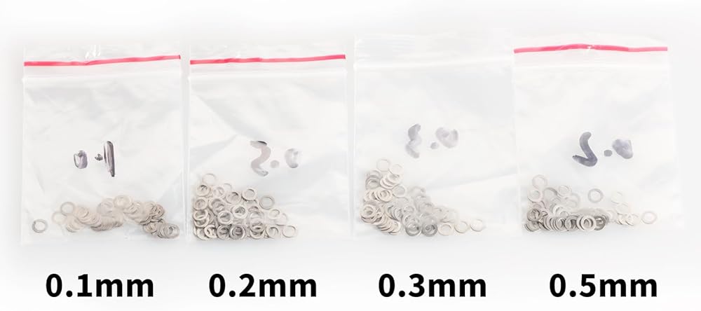 - Package Includes: 50pcs each of 0.1mm, 0.2mm, 0.3mm, and 0.5mm shims