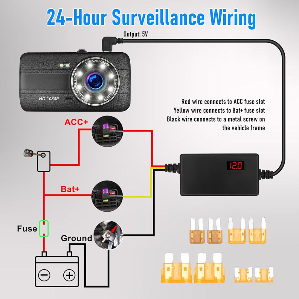 [Efficient Power Supply] The hardwire kit ensures 24 hours uninterrupted power supply for your car recorder, allowing for continuous monitoring and recording. it can be connected to the car battery or box power supply.