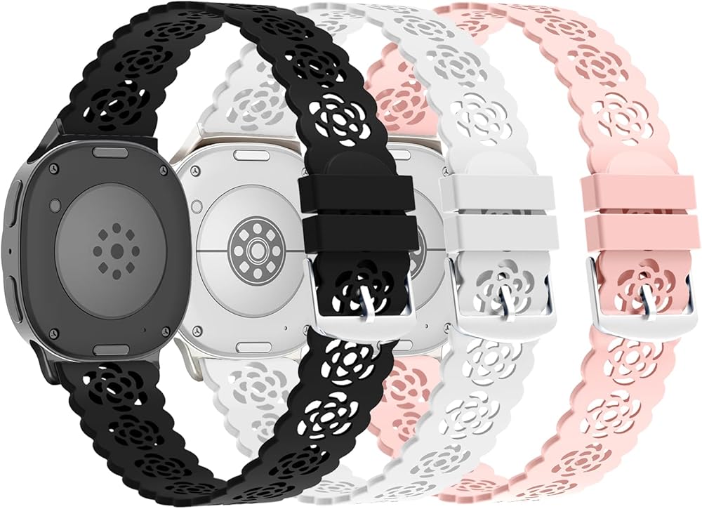 NEWEST UNIQUE ROSE HOLLOWED-OUT DESIGN: The rose cutouts go along the whole silicone sport band, make it extremely pretty and fashionable, highlight your fitness tracker. Hollowed-out watch strap makes your wrist breathe freely and feel comfortable all day.