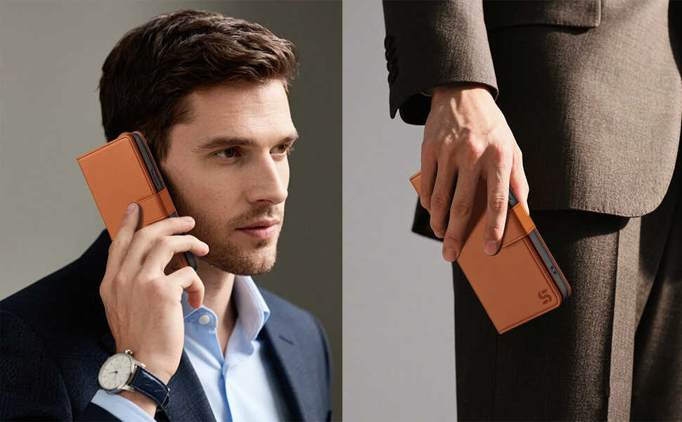 Luxury Hybrid Construction:Engineered with premium PU leather exterior and reinforced TPU core structure,featuring triple-protection surface(water-resistant/scratch-resistant/fingerprint-proof). Combines sophisticated aesthetics with rugged durability through its multi-layer protective design.The case maintains exceptional supple hand-feel while offering effortless maintenance for daily use