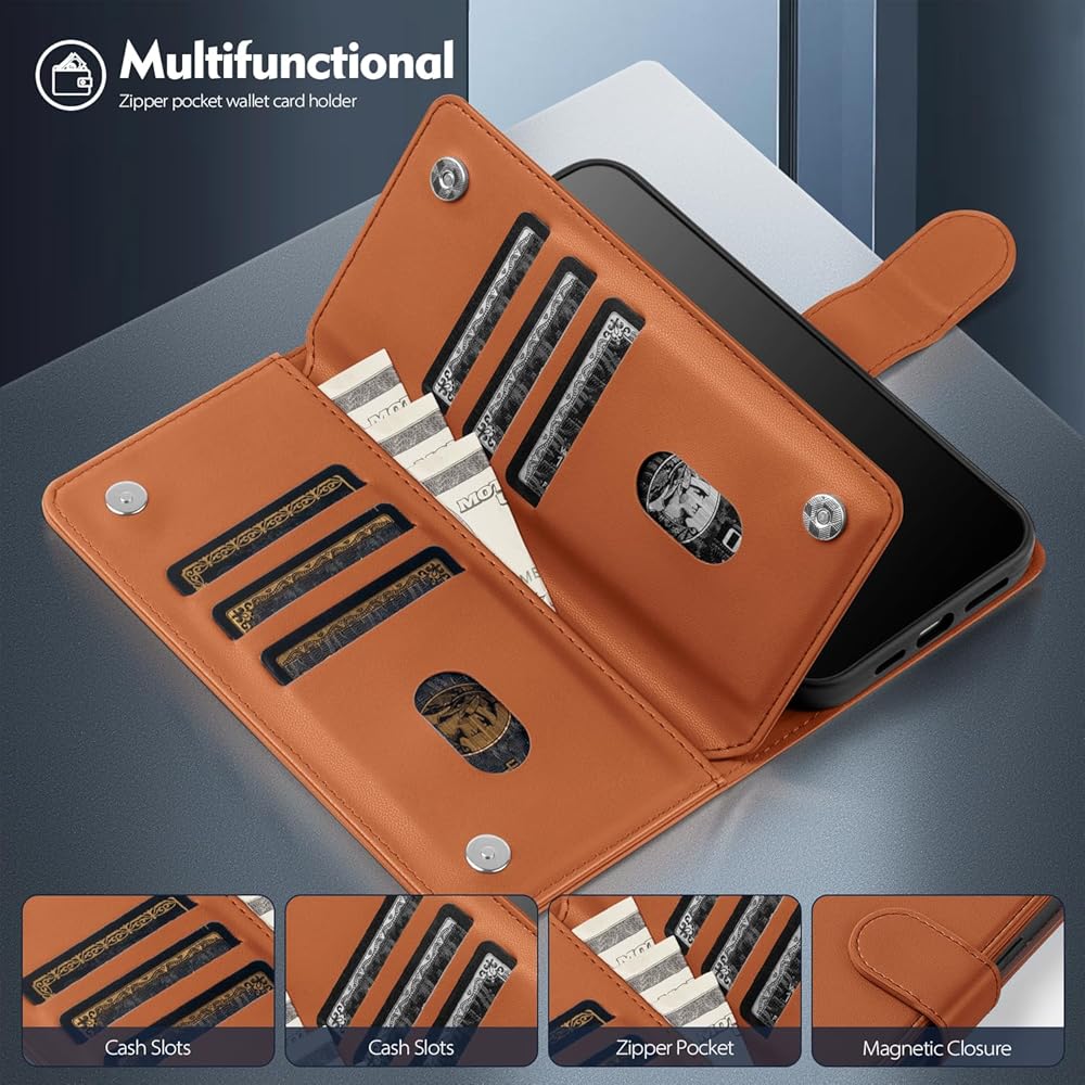 RFID-Blocking Wallet:Wallet case with 6 dedicated card slots for IDs/credit cards.Features an interior side pocket optimized for cash or business cards.Integrated RFID-shielding technology creates a protective barrier against electronic pickpocketing,blocking unauthorized scanner access to your card data.Constructed with RFID-blocking materials to ensure continuous information security