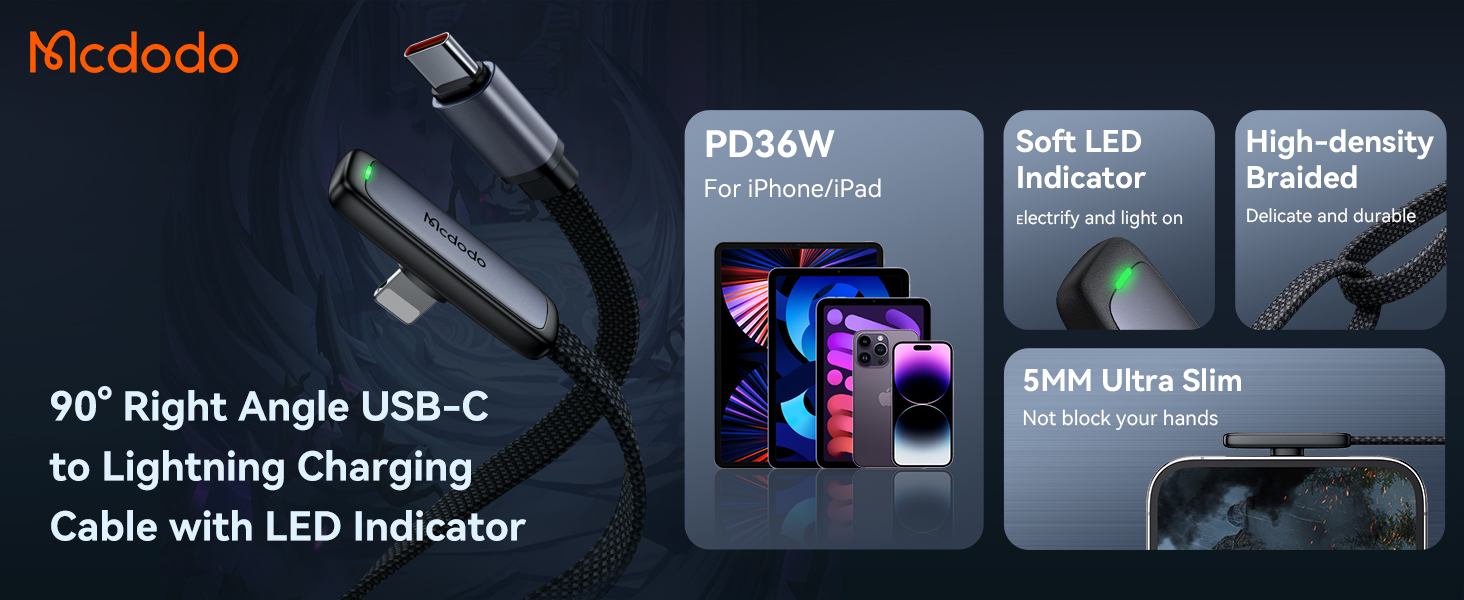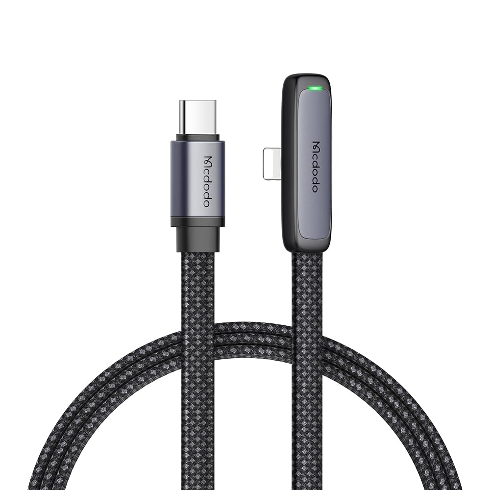mcdodo 6FT USB C to Lightning Cable 90 Degree Right Angle USB-C to Lightning Charging Cable with LED Indicator Light Compatible with iPhone 14 13 12 11/Pro/ProMax/Plus, iPad, AirPods, iTouch